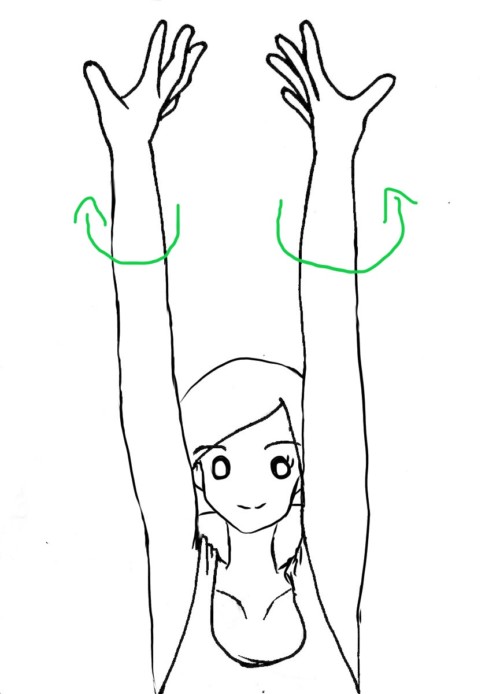 ③限界まで手のひらを外に向けたら、両腕の力を【一気に脱力】させます。